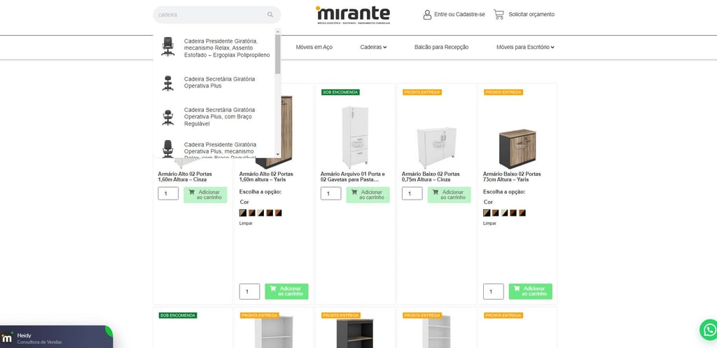 Escolha seus móveis, adicione ao carrinho e peça o orçamento direto pelo site de maneira simples e rápida.