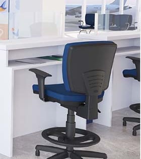 Cadeiras com conforto e em acordo com as normas de ergonomia.